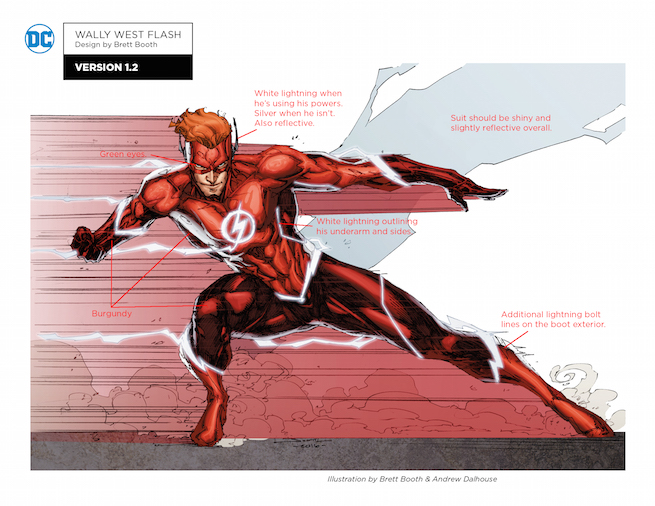 En fin, a pesar de estas “complicaciones”, parece que Wally se unirá a sus viejos compañeros recordando así sus viejas épocas con los Jóvenes Titanes salvando al Mundo. Y centrandonos en lo principal de la nota, DC Comics ha lanzado el diseño conceptual creado por el dibujante Brett Booth, para el nuevo traje de Wally West, junto a algunas anotaciones que profundizan en su nuevo aspecto.