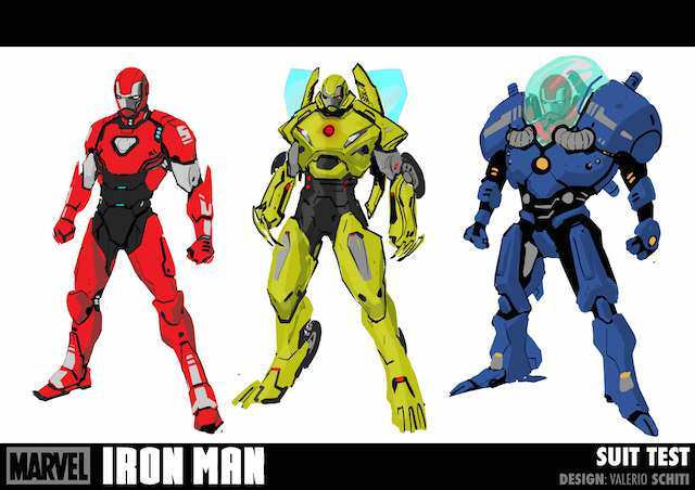 Valerio Schiti (dibujante) compartió varios diseños de algunas de las armaduras que veremos en este título, a la vez que ha compartido diseños para Jocasta, su versión de Tony Stark, Bethany Cabe, el antiguo War Machine y Iron Woman.