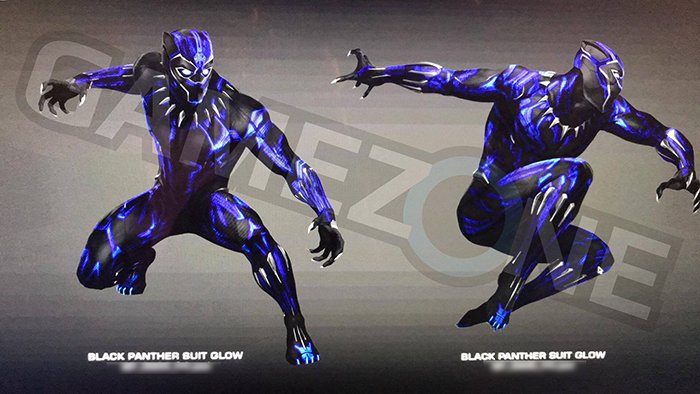 Por último llegan los diseños de Black Panther, donde vemos al Rey de Wakanda con un traje brillante, con unas franjas azules que se destacan sobre el traje negro.