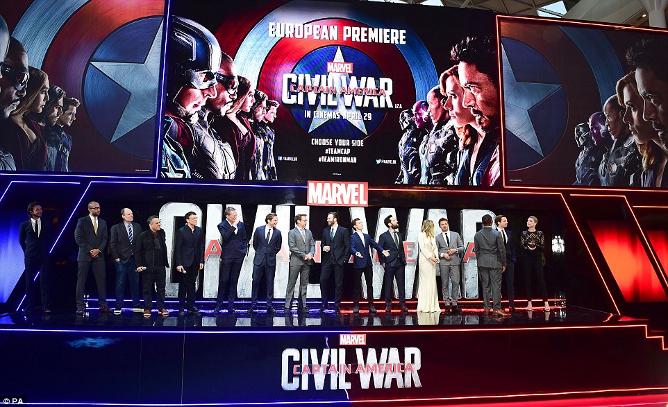 A horas del estreno Mundial de Captain America: Civil War, los actores y el equipo del film realizaron la última premiere en el Reino Unido, donde pasaron los actores, directores, productores y más, por la alfombra roja. Al evento acudieron, además de los protagonistas como Chris Evans o Robert Downey Jr, otros actores del elenco como Emily VanCamp (Sharon Carter), Samuel L. Jackson (Nick Fury), Paul Bettany (Vision), y Daniel Bruhl (Zemo).