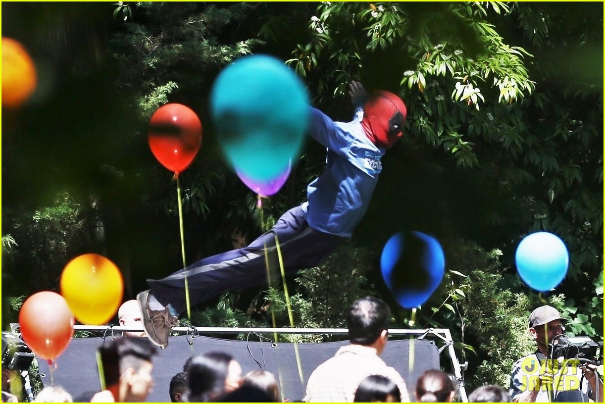 En la primera imagen publicada, tenemos a Deadpool vestido de “civil” y con su característica máscara irrumpiendo en una fiesta de cumpleaños infantil.