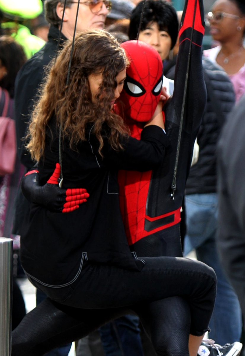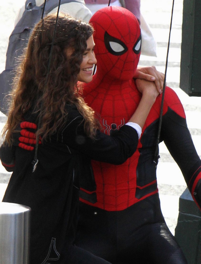 En las imagenes podemos ver a Spidey rescatando a MJ y escapando con ella frente a un icónico lugar neoyorquino. Como se puede ver, el traje parece tener una tonalidad negra (o azul muy oscuro), unos bordes blancos en el logo arácnido de su pecho y algunos detalles diferentes en diseño especialmente en sus manos.