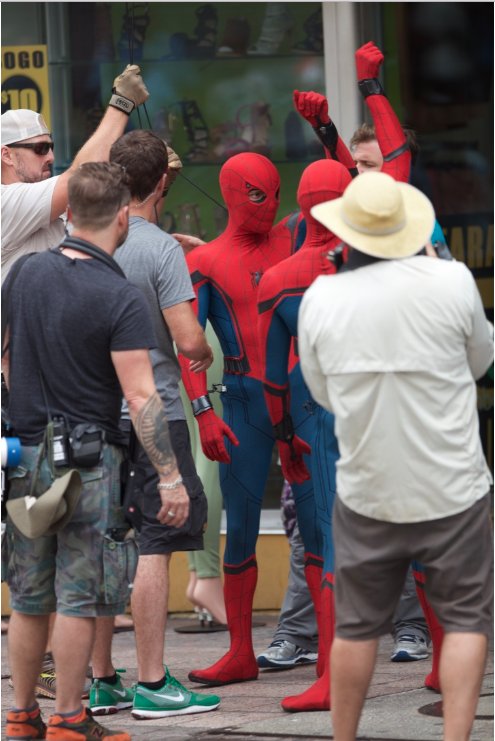 En este oportunidad podemos ver a Tom Holland y su doble de acción -por lo que podemos comprobar que efectivamente Tom estaba en esa escena-.