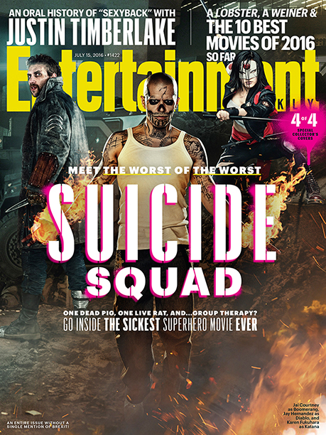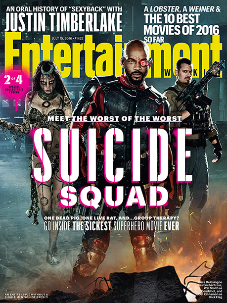 La Warner Bros. y DC compartieron a través de Entertainment Weekly nuvas imágenes del Suicide Squad. Las mismas incluyen ángulos en primer plano de Jared Leto como el Joker, Margot Robbie como Harley Quinn, Cara Delevingne como Enchanteresse, Common como Monster T, Will Smith como Deadshot, Karen Fukuhara como Katana, Jay Hernandez como el Diablo, Jai Courtney como Boomerang, Joel Kinnaman como Rick Flag y más.