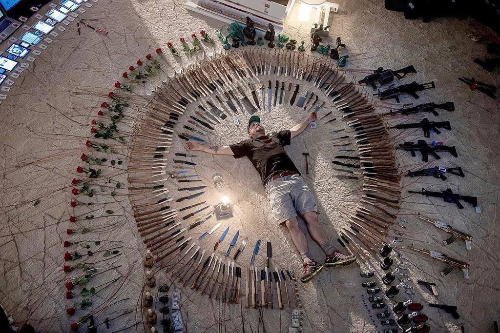 Además desde la cuenta oficial de Suicide Squad en las redes sociales, compartieron una imágen en detalle de todos los ángulos del bate de baseball que usa Harley en el film y David Ayer recostado sobre una escena que vimos en los trailers donde el Joker esta rodeado de armas.
