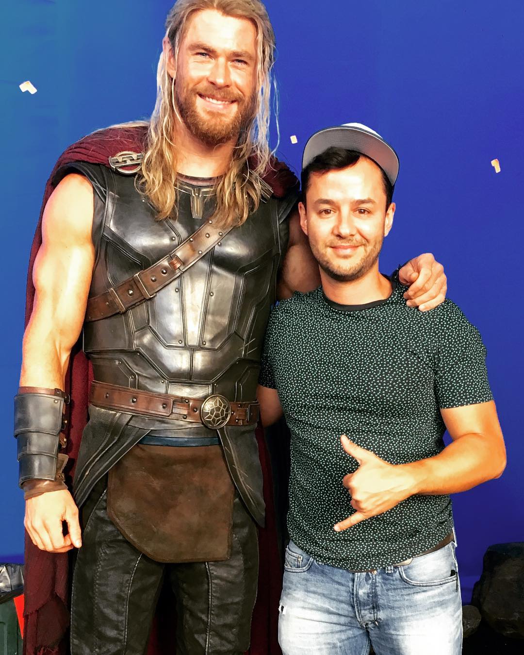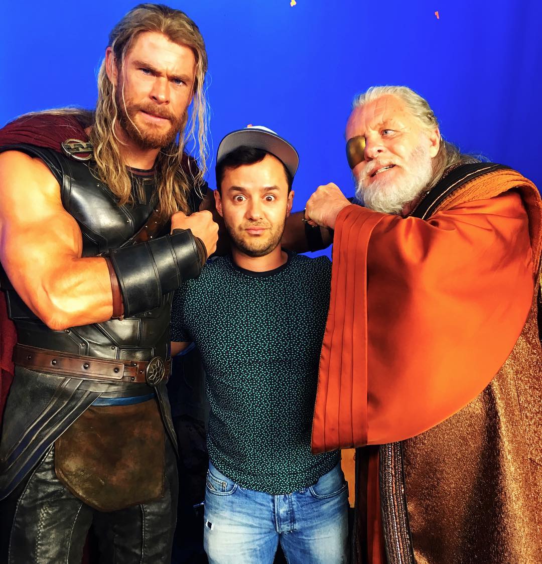 Un misterioso y suertudo usuario de Instagram, logró compartir unas imágenes que se sacó junto a Chris Hemsworth, Tom Hiddleston y Anthony Hopkins en el set de Ragnarok mientras llevaban sus trajes de la película.