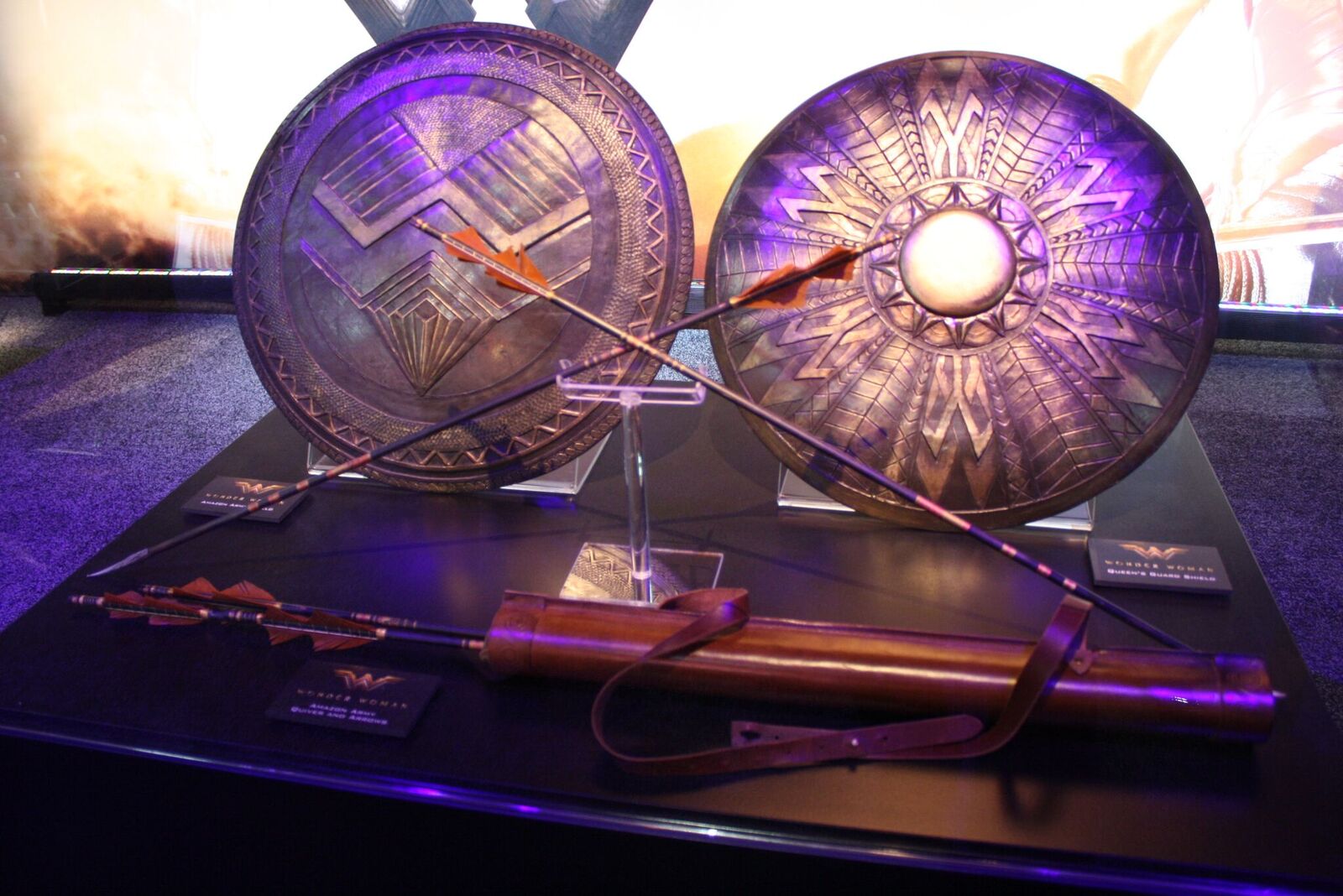 En las imagenes podemos ver parte del vestuario usado de Patty Jenkins, como por ejemplo algunos trajes de la Reina Hipólita -Connie Nielsen-, Steve Trevor -Chris Pine- y la Princesa Diana -Gal Gadot-. Además del vestuario, tenemos algunos accesorios como las espadas y escudos usados por las amazonas.