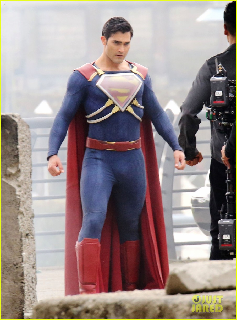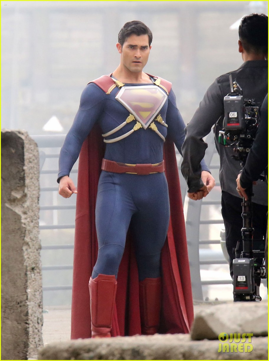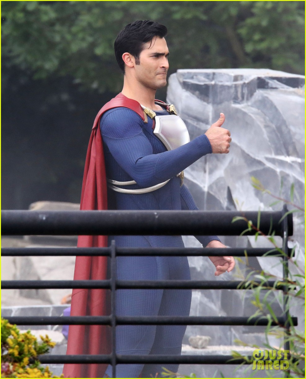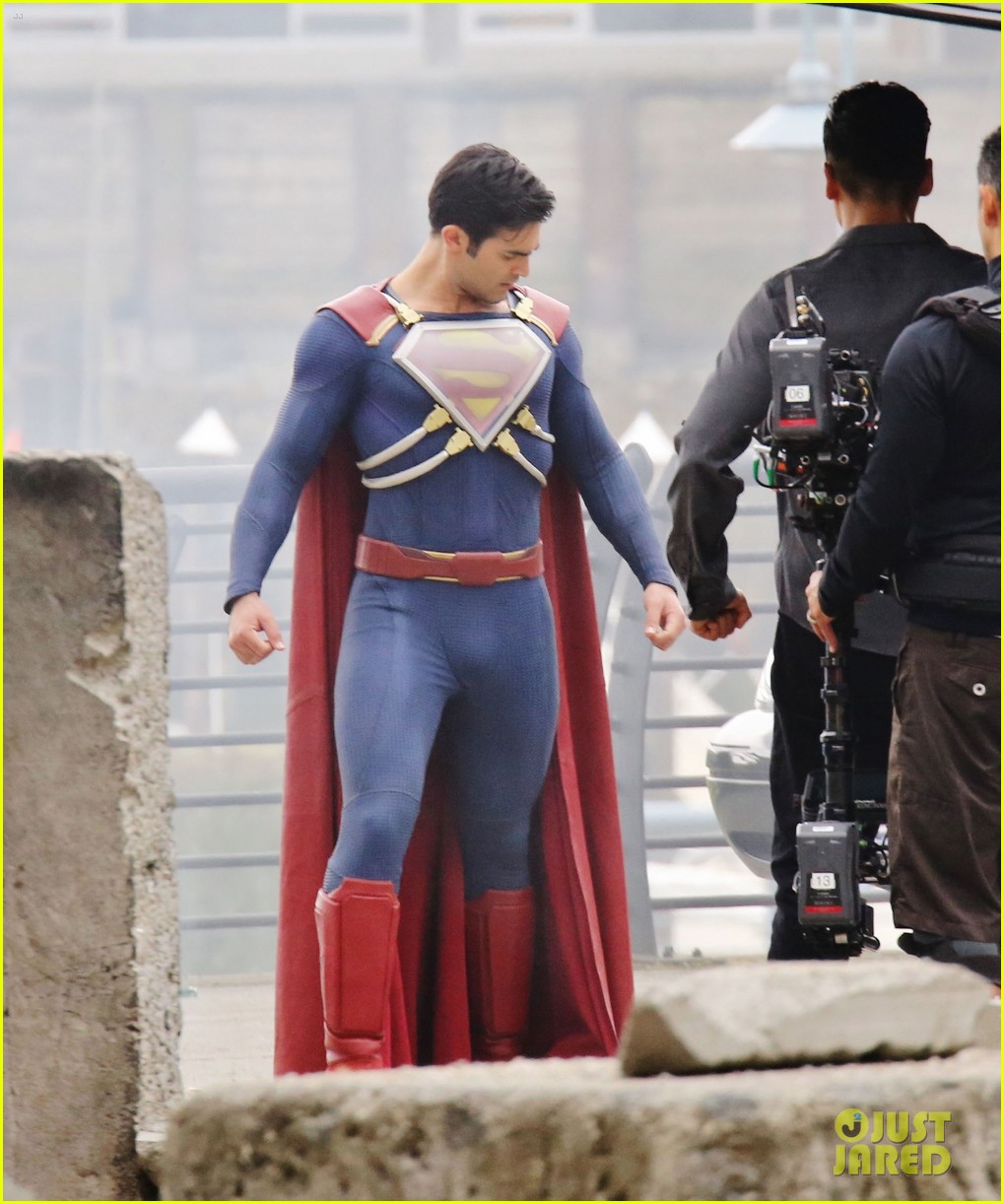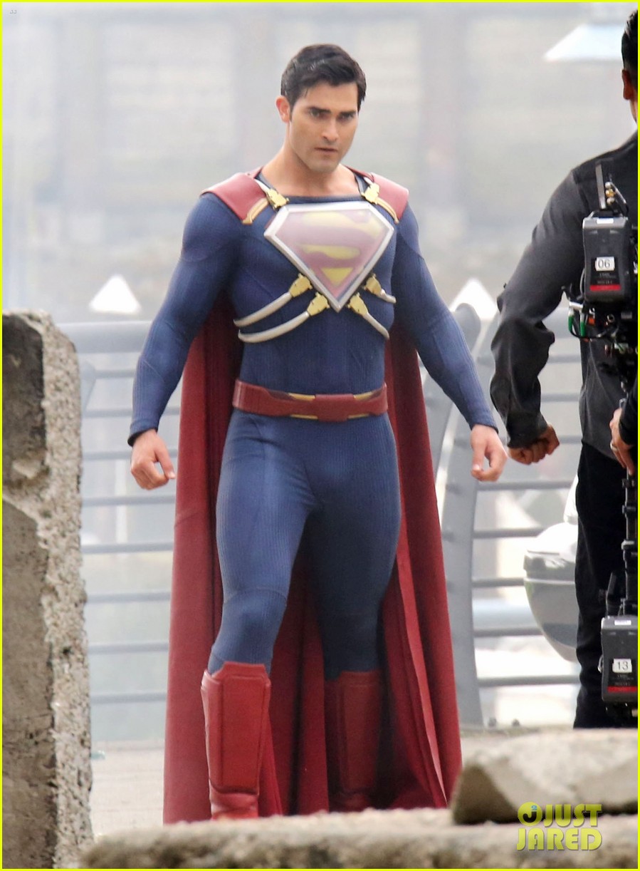Mientras vemos las indicaciones sobre la escena que está rodando Tyler -Superman-, podemos ver que en el traje de Superman, sobre su escudo, hay algún tipo de dispositivo que nos recuerda al utilizado por Flash en el crossover con Supergirl, donde a través de el pudo viajar en el tiempo y espacio, aunque viendo otras imagenes podría tratarse de algun dispositivo creado para poder luchar contra un enemigo que soporta el poder kryptoniano o para potenciar los poderes de Superman.