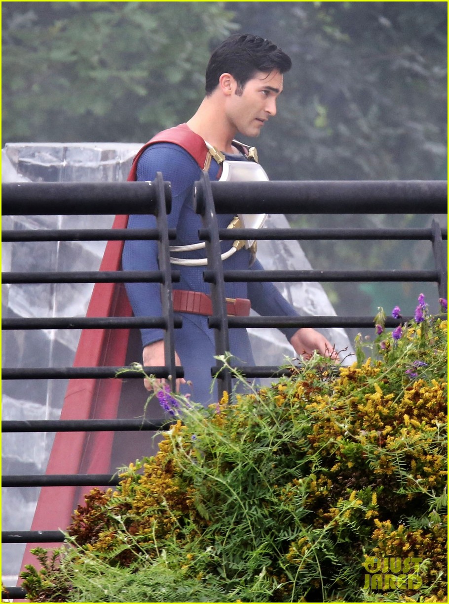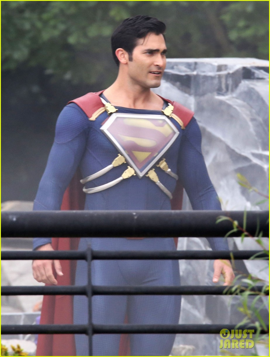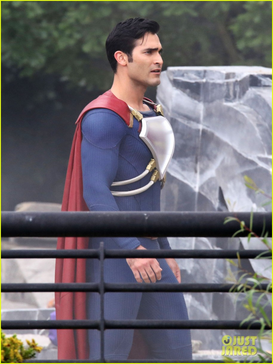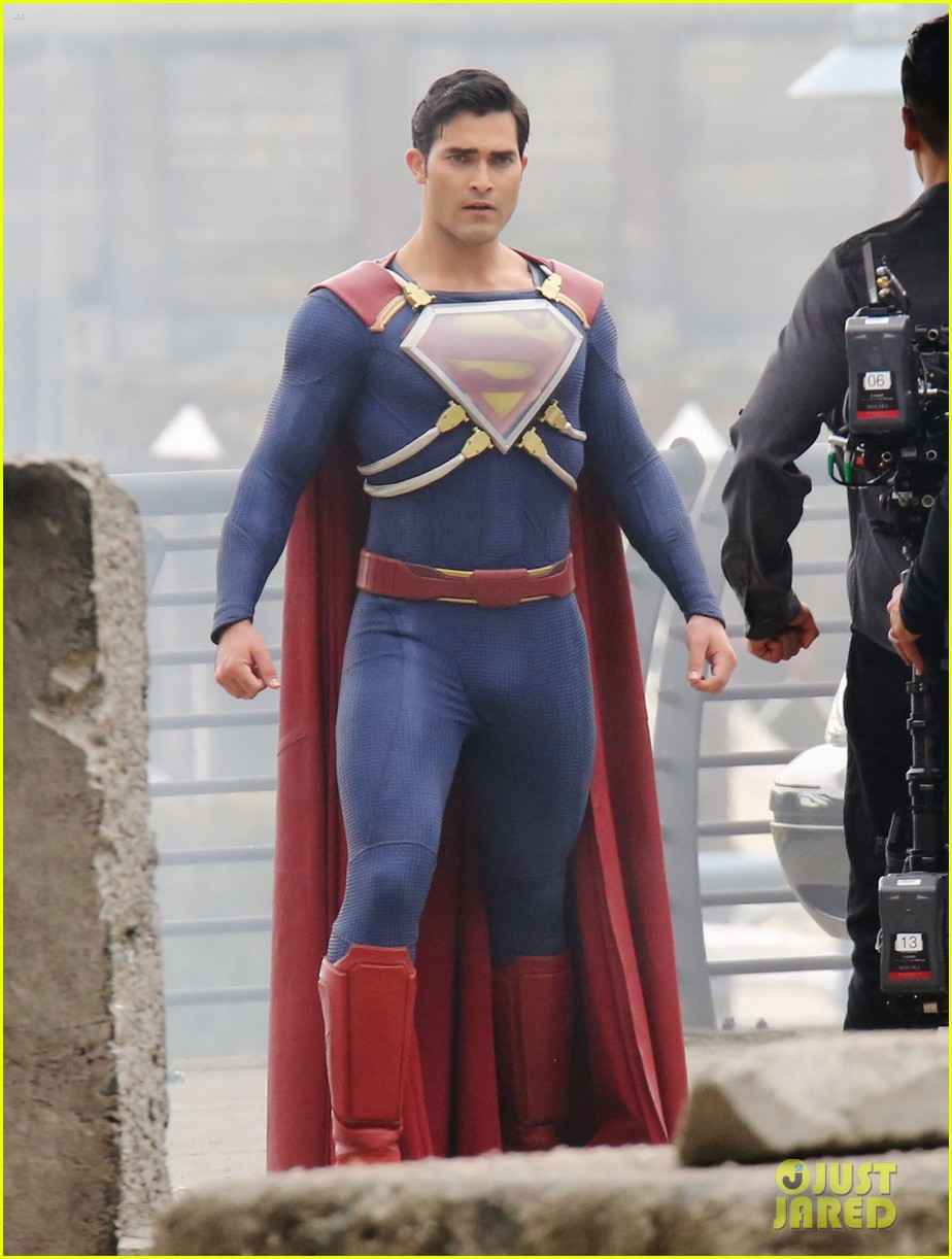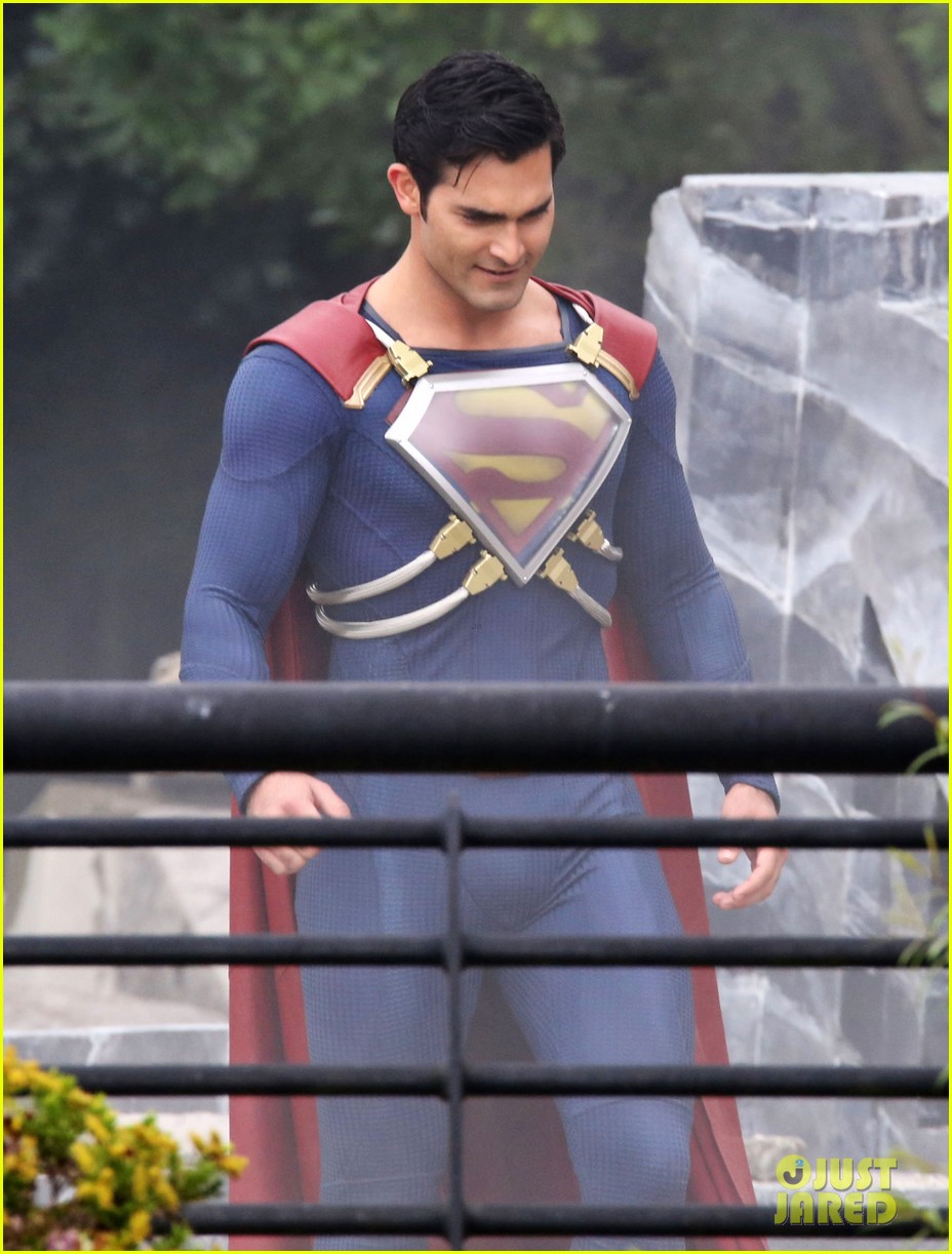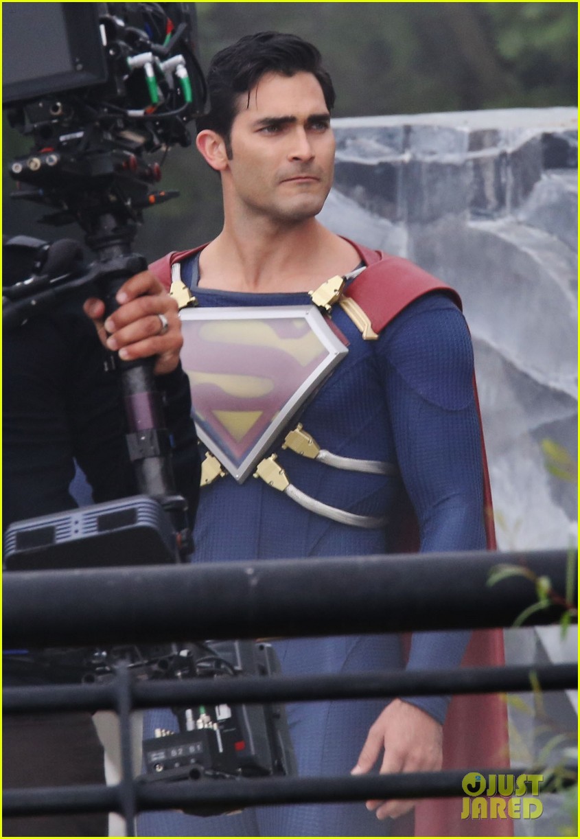 Mientras vemos las indicaciones sobre la escena que está rodando Tyler -Superman-, podemos ver que en el traje de Superman, sobre su escudo, hay algún tipo de dispositivo que nos recuerda al utilizado por Flash en el crossover con Supergirl, donde a través de el pudo viajar en el tiempo y espacio, aunque viendo otras imagenes podría tratarse de algun dispositivo creado para poder luchar contra un enemigo que soporta el poder kryptoniano o para potenciar los poderes de Superman.
