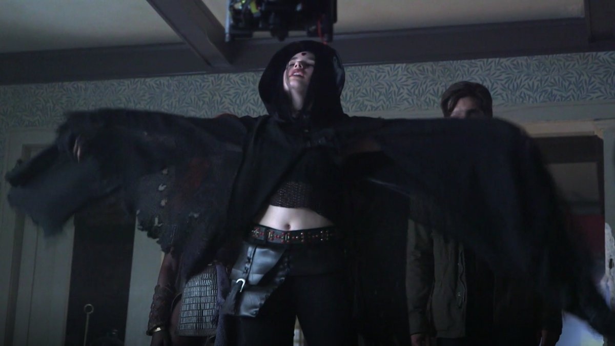 Por otra parte, podemos ver a Rachel Roth/Raven haciendo lo suyo con un aspecto similar al de su contrapartida en los comics.